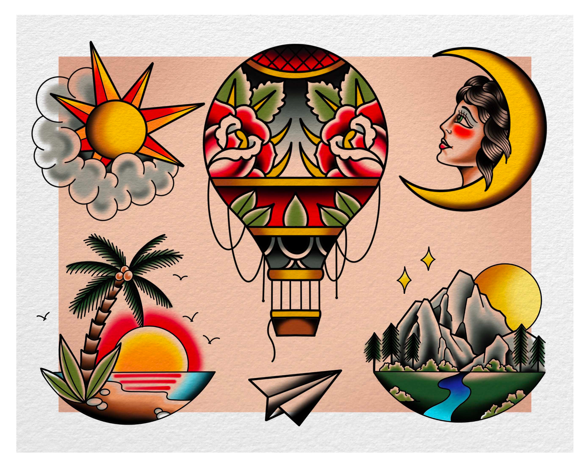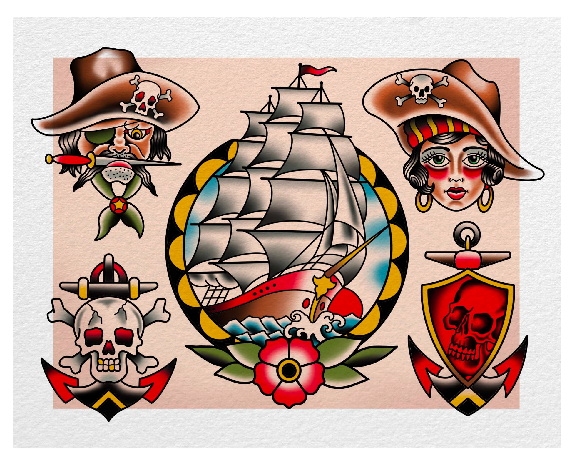 25 pages plus the corresponding line drawing. Perfect to keep on your iPad while traveling. These designs have been up in our shops wall, and people aren't afraid to slap them on their skin.