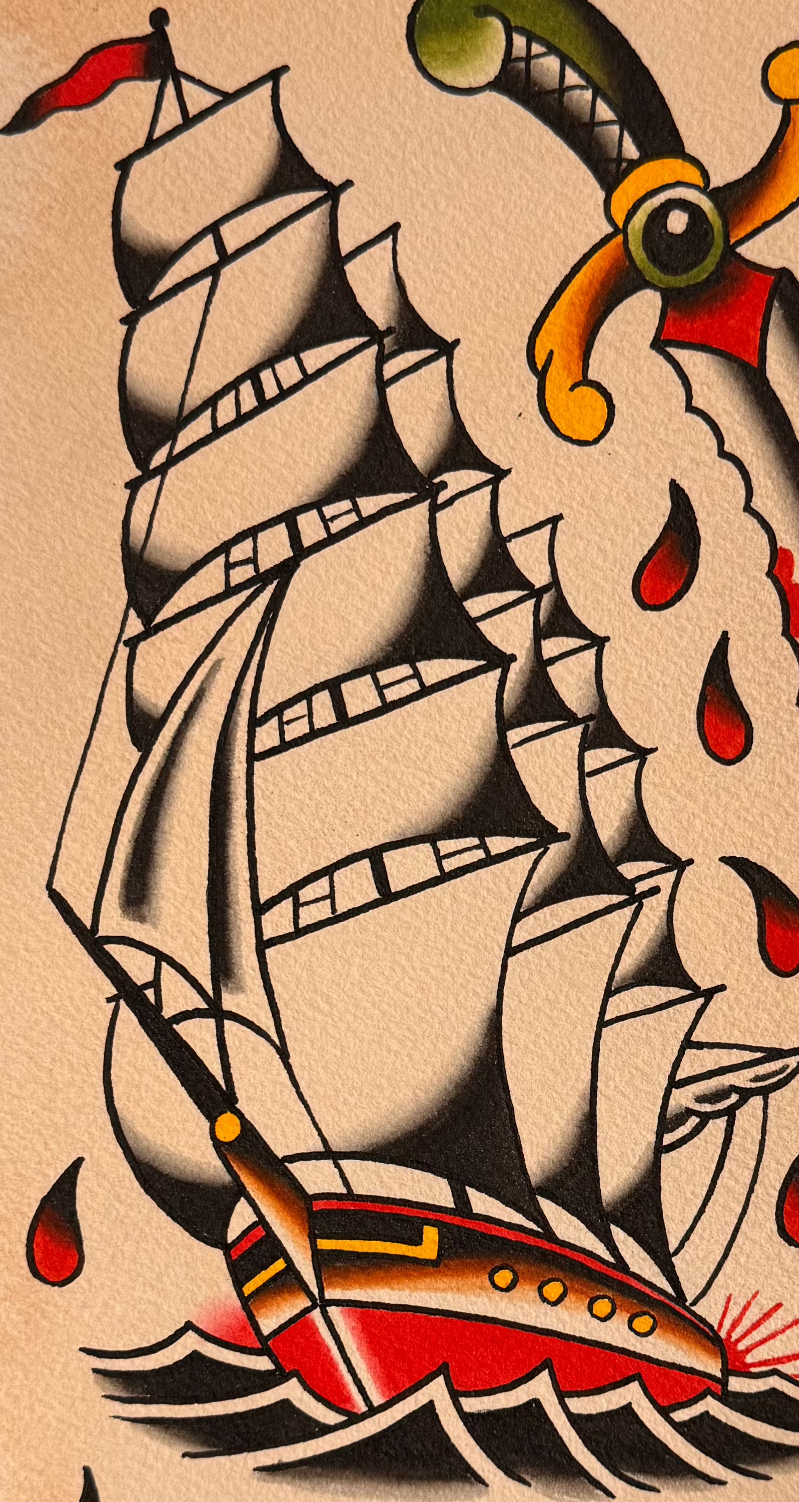 One of the most classic designs, I could think of is a clipper ship. As timeless as the sea itself